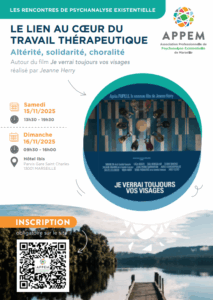 Samedi 15 et Dimanche 16 Novembre 2025, Le lien au cœur du travail thérapeutique Samedi 15, 13h30 – 19h30 Dimanche 16, 9h30 – 16h Hôtel IBIS- Saint Charles MARSEILLE Télécharger le document S’inscrire |